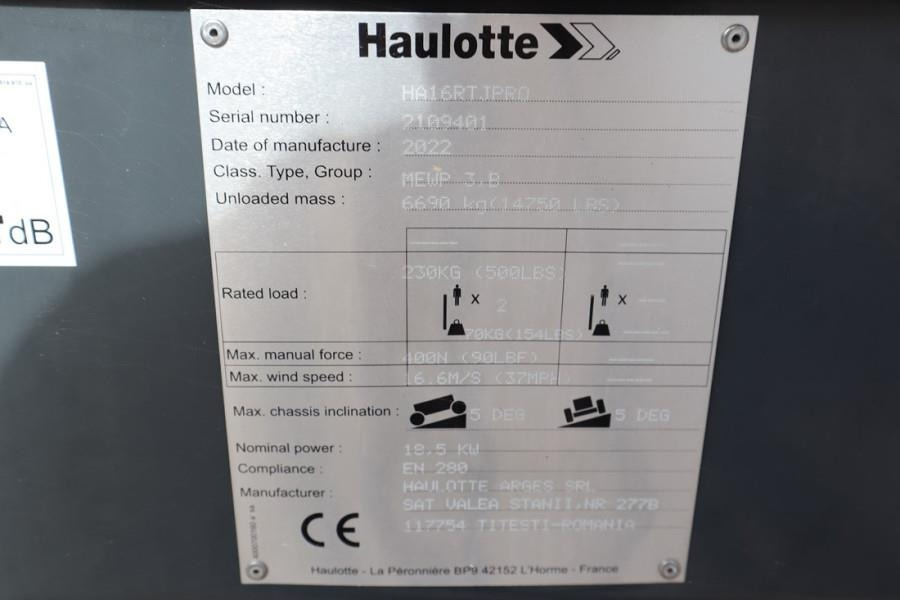 Vérifier les caractéristiques techniques de l'appareil, choisies dans le catalogue HAULOTTE Nacelle articulée.