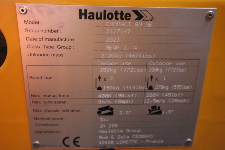 Controleer de technische gegevens van het apparaat, uitgezocht uit de catalogus van HAULOTTE Compact 8 Schaarlift.