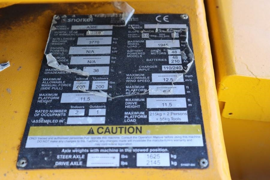 Controleer de technische gegevens van het apparaat, uitgezocht uit de catalogus van SNORKEL Knikarmhoogwerker.